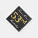 This simple and elegant paper napkin design features a message like "Name-Here’s 53rd Birthday" (with the "53rd" having a faux gold-like colouring look) within a black-coloured square area featuring a simple border outline. The name is in a white-coloured script-like text, and can be personalised. Napkins like these could perhaps be used at a birthday party for somebody who is celebrating their fifty third birthday. [~Z0000136]