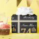 This simple and elegant wrapping paper design features a personalised message like "Name-Here’s 74th Birthday" (with the "74th" having a faux/imitation gold-like colouring look) within a black-coloured square area featuring a simple border outline. The name is in an elegant white-coloured script-like text, and can be personalised. Wrapping paper like this could perhaps be used when wrapping birthday gifts for somebody who is celebrating their seventy fourth birthday. [~Z0000217]