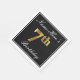 This simple and elegant paper napkin design features a message like "Name-Here’s 7th Birthday" (with the "7th" having a faux gold-like colouring) within a black-coloured square area featuring a simple border outline. The name is in a white-coloured script-like text, and can be personalised. Napkins like these could perhaps be used at a birthday party for somebody who is celebrating their seventh birthday. [~Z0000136]