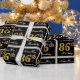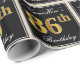 This simple and elegant wrapping paper design features a personalised message like "NameHere’s 86th Birthday" (with the "86th" having a faux/imitation gold-like colouring look) within a black-coloured square area featuring a simple border outline. The name is in an elegant white-coloured script-like text, and can be personalised. Wrapping paper like this could perhaps be used when wrapping birthday gifts for somebody who is celebrating their eighty sixth birthday. [~Z0000217]