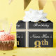 This simple and elegant wrapping paper design features a personalised message like "Name-Here’s 8th Birthday" (with the "8th" having a faux/imitation gold-like colouring look) within a black-coloured square area featuring a simple border outline. The name is in an elegant white-coloured script-like text, and can be customised. Wrapping paper like this could perhaps be used when wrapping birthday gifts for somebody who is celebrating their eighth birthday. [~Z0000217]