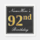 Elegant, Faux Gold 92nd Birthday + Custom Name Napkin