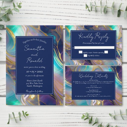 Elegant Faux Gold & Blue Opal Stone Wedding SuiteDesigned by Lola F