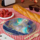 Wedding plates featuring a design with an elegant faux gold and blue opal stone swirled background.