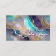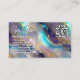 A business card with a pretty faux gold and opal stone pattern in tones of blue and purple.