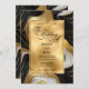 A wedding invitation featuring a faux gold, black and white marbled design.