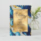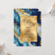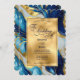 A wedding invitation featuring a faux gold, blue and white marbled design.