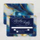 An elegant wedding RSVP card featuring a faux gold, blue and white marbled design.