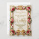 Set the tone for your formal spring union with this ornate, classically inspired design featuring garden roses, a regal crest, and warm metallic accents.This design features a symmetrical composition centered around a custom oval monogram crest. Lush, intricate borders of blush pink and rose red roses mix with sage green foliage to frame your wedding details. The artwork is accented by printed faux gold foil flourishes and vintage-style cherub illustrations at the base, all set against a soft, creamy ivory background. The typography blends elegant serif headers with flowing calligraphy script for names.This is a flat printed image with a Faux Gold Foil effect, not actual raised material.