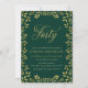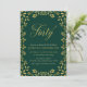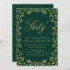 Elegant 40th Birthday Party invitation featuring a border of leaves and the word "Forty" in faux gold against a green background. Card includes a matching green back side.