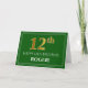 Elegant Faux Gold Look 12th Birthday, Name (Green) Card