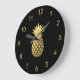 This elegant clock features a faux gold pineapple and numbers on a dark, black background.