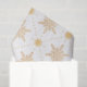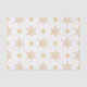 Tissue paper with elegant faux gold foil imitation snowflakes and stars pattern on white background.