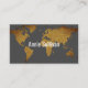 A business card for a travel agent, or any other professional... with the image of a faux golden (ochre colour simulating gold) map of world on a grey background.