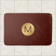 Elegant Faux Red Leather & Gold Monogram Initial Bath Mat