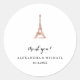 These stylish wedding favour stickers feature a faux rose gold image of the Eiffel Tower, along with your names and wedding date in classic black text, and the words "thank you."