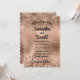 A wedding invitation featuring an elegant faux rose gold glitter and foil background.