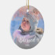 Elegant faux rose gold glitter blessed text photo ceramic tree decoration