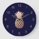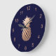 Elegant Faux Rose Gold Pineapple on Navy Blue Large Clock