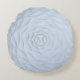 A round pillow for your boudoir or reading nook, a white faux ruffle pillow with a space for your initial