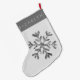 Elegant Faux Silver Grey Snowflake with Name Large Christmas Stocking