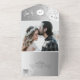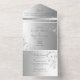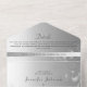 A luxurious and elegant all-in-one wedding invitation, blending modern chic with faux silver accents. Adorned with bohemian vintage florals, a monogram at the top flap, and graceful modern calligraphy, this design beautifully showcases the couple’s photo. Personalise it with your own photo, wedding details, and RSVP for a truly unique and sophisticated invitation.