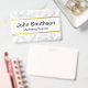 This white marble name badge has black text and a faux gold line above and below the text. Personalise it with your text such as name and title.