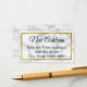 This faux white marble change of address insert can be personalised with your desired text. At the top, there's an elegant black script (shown: New Address). Then there are three lines of black display text for your name and address. The gold look border is not made of foil.