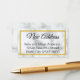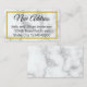 This faux white marble change of address insert can be personalised with your desired text. At the top, there's an elegant black script (shown: New Address). Then there are three lines of display text for your name and address. The text is black. The gold look border is not made of foil.