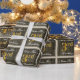 This simple and elegant wrapping paper design features a personalised message like "Name-Here’s 3rd Birthday" (with the "3rd" having a faux/imitation gold-like colouring look) within a rustic faux/imitation wood appearance square area featuring a simple border outline. The name is in an elegant white-coloured script-like text, and can be personalised. Wrapping paper like this could perhaps be used when wrapping birthday gifts for somebody who is celebrating their third birthday. [~Z0000232]