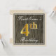 Elegant, Faux Wood, Faux Gold 4th Birthday + Name Invitation