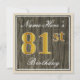 Elegant, Faux Wood, Faux Gold 81st Birthday + Name Invitation