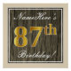 Elegant, Faux Wood, Faux Gold 87th Birthday + Name Poster