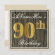 Elegant, Faux Wood, Faux Gold 90th Birthday + Name Invitation