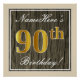 Elegant, Faux Wood, Faux Gold 90th Birthday + Name Poster