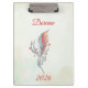 This personalized clipboard features a delicate hand-drawn feather intertwined with botanical details, set against a soft watercolor wash in warm peach and golden tones. The flowing script name at the top makes it a thoughtful and refined keepsake — perfect for journaling, planning, reflections, or creative writing.