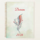 This personalized planner features a delicate hand-drawn feather intertwined with botanical details, set against a soft watercolor wash in warm peach and golden tones. The flowing script name at the top makes it a thoughtful and refined keepsake — perfect for journaling, planning, reflections, or creative writing.