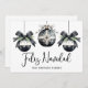 Send warm holiday wishes with this elegant flat Christmas card, featuring a minimalist front design with three black and white watercolor ornaments, accented by evergreen greenery and sweet bow details. "Feliz Navidad" is written in graceful script typography, with your family name displayed underneath in a classic serif font for a custom touch. You can also change the greeting to suit your style.