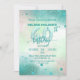 Elegant and feminine personalized 40th birthday party invitation featuring the number 40 made of teal foil balloons on an abstract pastel background with glitter elements. The text is fully customizable. To change it use the Personalize option. For more changes, such as changes to the font, font color or text layout, use the Edit design tool option.