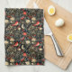 Elegant Festive Birds & Florals Christmas in Red and Cream kitchen towel