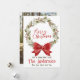 Elegant Festive Merry Christmas Wreath Red Bow Holiday Card