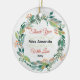 Elegant festive teacher Christmas wreath Ceramic Ornament. Perfect Christmas ornament to thank a teacher for all their support. A beautiful keepsake gift for your favourite teacher that you can Personalise by adding teachers name and year.