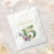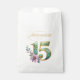 This elegant favour bag is perfect for a quinceanera celebration in shades of gold, teal, and lavender. The beautiful design features ornate gold number fifteen with shimmering accents, setting the tone for a stylish event. This bag is the perfect way to distribute favours to your guest on this special day. Search ID1029 to see other pieces in this beautiful suite.