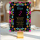 Guide your guests in vibrant style with this elegant fiesta Wedding Seating Table Number card. Featuring a colourful floral frame inspired by traditional Mexican folk art, bold blooms in different colours like red, yellow, pink, and turquoise pop against a rich black background. The vivid contrast ensures the table number is easy to read while adding a festive, elegant touch to your reception décor. Perfect for couples looking to infuse their celebration with cultural charm, joyful colour, and modern stylish sophistication.