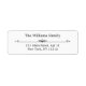 Elegant filigree white return address pre-filled labels for envelopes with black text.