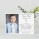 Modern Elegant Silver First Holy Communion Invitation with Cross and Photo.