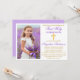 Modern Elegant Violet Purple and Gold First Holy Communion Invitation with Cross and Photo.