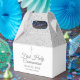 Elegant first holy communion favour box featuring silver stardust with your event details set in chic silver typography. You can personalise with your own thank you message on the reverse. A perfect way to say thank you to your guests! Designed by Thisisnotme©