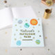 This First Trip Around The Sun guest book and album in a blue variation is a cute addition to the sun, stars, and planets theme for a baby boy's 1st birthday. It coordinates with the other galaxy party decor, check out the full collection. This design features a hand-painted sun, stars, and watercolor planets on the front and reverse side.