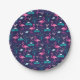 Elegant Flamingos and Lilypads Pattern on Navy Paper Plate